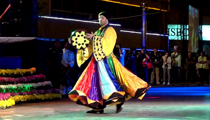 This Tanoura Dance was performance by the representative from Syria during Tawau International Cultural Carnival 2012. Tanoura dance is a form of folkloric dance in Syria. Tanoura means skirt in English and the dance is usually performed by Sufi men for the Sufi music. The dancer spin continuously like the dervish dancers in the Levant and Turkey. The Tanoura beat is religious in nature and the performers aim is to reach spiritual inner purity and to enter a trance-like state during the performance, being at one with God. The long swirling colorful skirts that the performer wear make spectacular patterns as they twirl around in circles. When the performers stop spinning at the end of the dance, the performance apparently showing no signs of dizziness. It’s amazing to watch! |