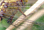 蜻蜓 生于水际。种类很多,多數的蜻蜓,雌雄顏色並不一樣. 形体及色彩亦多样。头上复眼甚大,四翅六足,后翅压前翅;翅透明有脉络网纹,翅角有翅痣。腹部细长,有环状节。 Photographed at Sabah forest reserve on 8th October 2006 Morning |