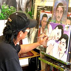 http://www.newsabahtimes.com.my/insite/insite_display/2209 Thursday February 11, 2010 The Man Below the Wind "The Man Below the Wind" may be an unfamiliar name to some, but every time Chinese New Year rolls around, this regal gentleman makes appearances around town, fascinating mall shoppers and hotel guests with his truly unique talents. With quick, deceptively simple strokes, he crafts works of art using a variety of brushes, writing Chinese characters and accompanying illustrations with the greatest of ease. The Man Below the Wind really pulls in the crowds. however, for the fact that this master of Chinese calligraphy is, in fact, Indian. Huang Poh Lo, or N. Poolohgasingam, is a self taught calligrapher who has perfected the art of Chinese brush work. Poh Lo started practicing calligraphy at the age of 45 in 1995. with his first resource being a book dating back to 1947, entitled Teach Yourself Mandarin. He has come quite far since his first brush stroke, and proudly shares that he can write Chinese well and also speaks it fluently. Sabah being a delightfully harmonious melting pot of many, many races, Poh Lo stands as an example of cultural integration in a truly unique sense. It is sufficiently unusual for someone with no Chinese heritage to take up the complex yet beautiful art of calligraphy. The Man Below the Wind took it a step further and incorporated elements of Arabic calligraphy, or Jawi, into his work. The result is a typographic style that he calls Shah Rumi.Jawi. Shah Rumi-Jawi demonstrates a mastery of control and discipline, with Poh Lo using brushes expertly to create impressive pieces within a matter of minutes. While he is fully capable of writing and illustrating entire works purely in Jawi, Poh Lo's variation on the font uses the style of Arabic script to write in the standard alphabet. A word may appear to be completely written in Jawi from afar, but reveals upon closer inspection that it is actually written in highly stylized Roman letters. The process is difficult to describe, yet fascinating to observe. A great part of Poh Lo's activities involves raising funds for Chinese schools, especially during the lunar month. He invests much time in his work, sitting at his decorated booth dressed in traditional clothing and effortlessly turning out page after page of calligraphy, yet he never asks for payment. Poh Lo gives away his work free of charge, but wholeheartedly appreciates any donations that his audiences may offer in the name of education. Such skill in calligraphy and the prestige of having created a new font deserve to be preserved, but Poh Lo says that his family have little interest in carrying on his legacy themselves. He looks forward to establishing a foundation one day, where aspiring calligraphers may absorb his style, and perhaps even build upon it. More immediate plans are in store, however, as Poh Lo intends to begin selling one•of-a•kind pieces over the internet. The man has garnered an international following, maintaining correspondence with a network of friends and fans that has grown steadily over the years. Poh Lo's unique, limited edition works will be sold at a much higher price, which is definitely well deserved after 15 years at the grindstone. A biting sense of humor and a charming demeanor combined with natural talent make Huang Poh Lo an interesting individual to seek out this lunar month. Don't be intimidated by the strong presence and personality that he possesses, for underneath it all lies a steady sense of humility. When complimented by this writer on his gifts, he simply said, When you mix love and skill, you get a masterpiece." And masterpieces are exactly what you can expect to leave with when you pay a visit to The Man Below the Wind. Huang Poh Lo is currently based at l Borneo Hypermall during weekends, and can be contacted via email at huangpohlo@hotmail.com or through his mobile at 019.8993248. |