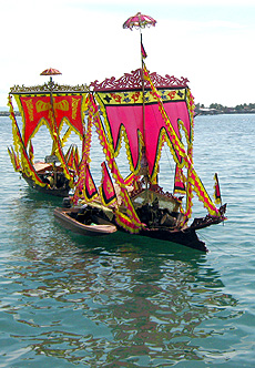 are decorated with brightly colored sails known as sambulayang and tapis (small