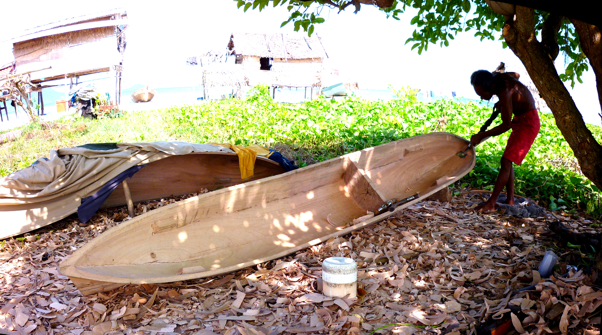 Boggo is much smaller and dug-out from solid log by hand. The boggo’ boats are used exclusively inshore over shallow water.