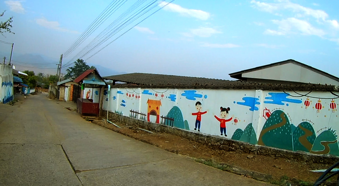 You know this is a Chinese Village with a lot of Chinese writings and drawings appear on the village wall.