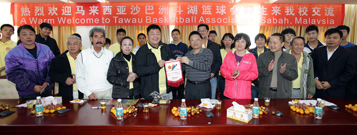 2011年12月2日,馬來西亞沙巴斗湖籃球協會一行二十餘人在主席鐘觀平先生的帶領下訪問深圳市平岡中學,並與平岡中學籃球隊進行了深入的交流。 廣東省深圳市龍崗區平岡中學每年都要舉辦籃球節,在校園內形成了濃厚的籃球氛圍。 圳市龍崗區平岡中學籃球隊曾多次代表廣東省參加全國比賽,取得了優異的成績,還曾代表中國遠赴加拿大參加比賽。今年7月份更成功舉辦了第八屆CSBA全國中學生男子(乙組)籃球錦標賽並奪得冠軍。 8月底,圳市龍崗區平岡中學秦麗娜老師作為深圳市海外華文教育志願者獲邀赴馬來西亞沙巴州斗湖地區,協助培訓當地斗湖籃球協會和學校的中小學體育教師,受到斗湖籃球協會和學校的熱烈歡迎和高度評價。 為提高馬來西亞沙巴斗湖地區的籃球水平,斗湖籃球協會此次特意前來取經。 馬來西亞考察交流團到訪當天適逢是平岡中學一年一度的校運會,在蘇燕副主任和體育科組老師的帶領下,考察團一行到平岡中學體育場參觀了校運動會的盛況。 而看到體育場上熱火朝天的比賽,馬來西亞的孩子們也顯得躍躍欲試。在校運會組委會的安排下,平岡中學高二級拔河冠軍隊高二(8)班與沙巴斗湖籃球協會的同學們還就地來了場別開生面的“友誼”拔河賽。 最終,實力佔優的高二(8)班以2:0完胜對手,小小的一個比賽拉近了彼此的距離,也讓這些來自馬來西亞的孩子們感受到平岡中學濃厚的校園氛圍。 當天下午,平岡中學為這些來自馬來西亞的貴客舉行了一個簡短的歡迎儀式。 曾欽泉校長代表學校對馬來西亞沙巴斗湖籃球協會考察團一行的到來表示熱烈歡迎。曾校長向各位客人簡要地介紹了平岡中學的基本情況,並闡述了近幾年在辦學規模、學校實力、教育科研等方面取得的新發展。 馬來西亞沙巴斗湖籃球協會主席鐘觀平先生對校的熱情接待表示感謝,並對平岡中學的規模、辦學特色和辦學設施等予以了高度評價。 鐘主席稱,此次率團來平岡中學進行訪問,是希望以球會友,加強聯繫,開展體育交流,促進雙方籃球水平的不斷提高。 馬來西亞沙巴斗湖籃球協會此行的主要目的是學習平岡中學的籃球教學、籃球的科學化訓練等,接下來將在深圳短暫停留近兩週時間,期間將平岡中學籃球隊共同訓練並舉行友誼賽。 |