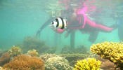 【馬來西亞·沙巴】 汀娜灣離島遊·令人沉醉的美麗島嶼 只要抓著繩子跟著教練的指引前進, 就可以跟一大群的魚、貝類還有小丑魚近距離的接觸, 水底工作人員還教我們用手掌心輕碰海葵.......那感受太奇妙了,(手掌心沒有毛細孔,才不會受傷) 會選「海底漫步」這項活動, 原因除了可以輕鬆到海底世界漫遊之外, 最主要也是這項活動還會幫我們在海底照像, 之後並贈送光碟及證書, 比起其他活動來說真是太超值了............... ............... 回來後讓我一直念念不忘的烤雞翅............... Camay www.wretch.cc |