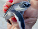 Baby turtles are released at night. Everyone get a chance to hold one for a