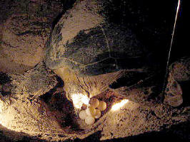 Almost every night mother turtles come up and lay their eggs, after digging a