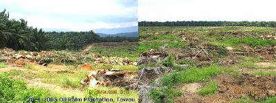 the old trees are replanted. Oil palms saplings are planted after