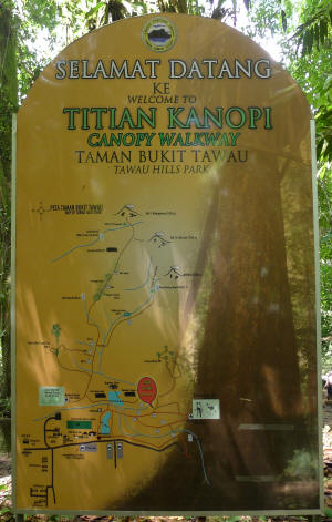 The canopy walkways is 1 km walk from car park of Tawau Hills Park.