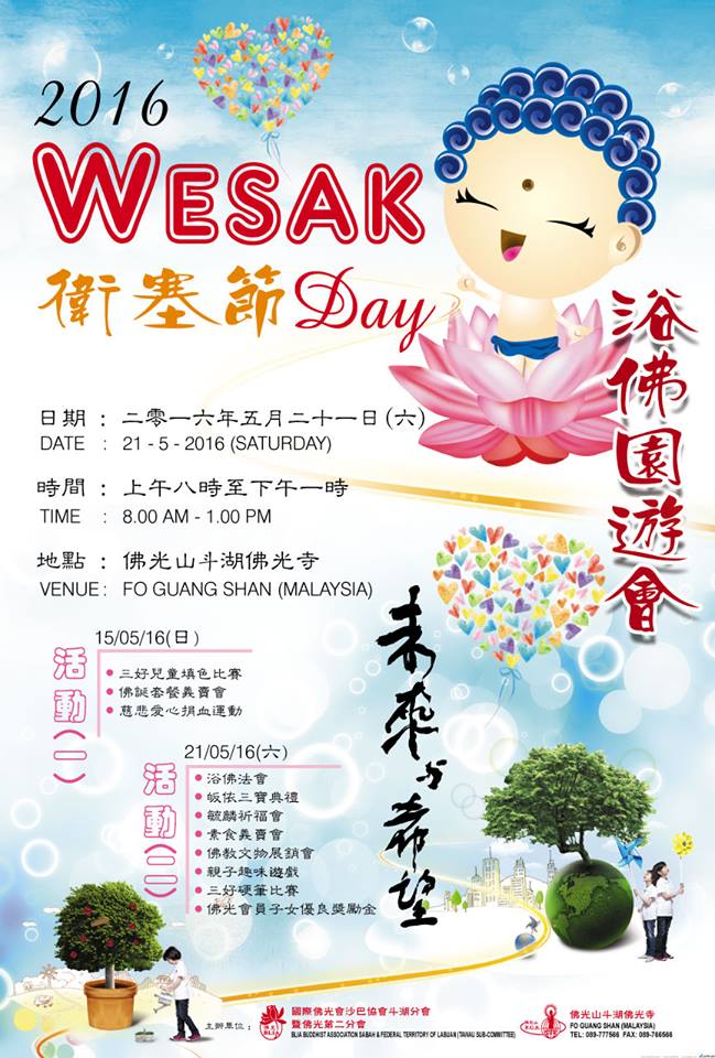 為慶祝衛塞節暨佛光山開山50週年,佛光山斗湖佛光寺和國際佛光會沙巴協會斗湖大湖分會暨佛光第二分會於5月21日(週六)舉辦2016年「慶祝衛塞節未來與希望浴佛園遊會」暨「佛光山50週年影像回顧圖像展」。一同慶祝這普天同慶佛陀誕生、成道、涅般的三喜慶典。同時慶祝佛光山開山50週年系列活動。