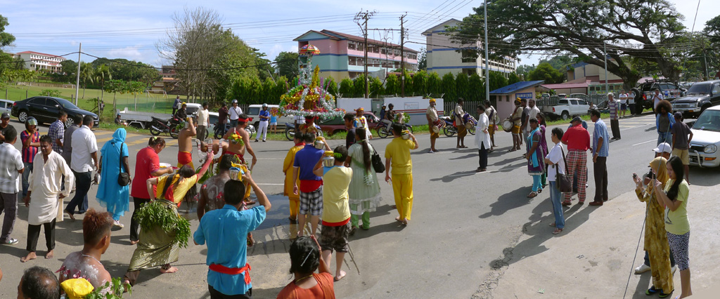 CHILDREN Kavadi procession on bear feet reroute a 3 Kilometers main roads from a small Hindu Shrine to the mother Murugan Temple. On the way passing through a primary school where school children watch with excitement but restrict within the school compound (for traffic safety reasons of the children) |