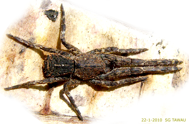 This genus of spiders can be easily recognized by their body with adhered soil particles, numerous club-shaped hairs (棍狀毛) and powerful and long leg I.
