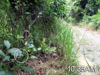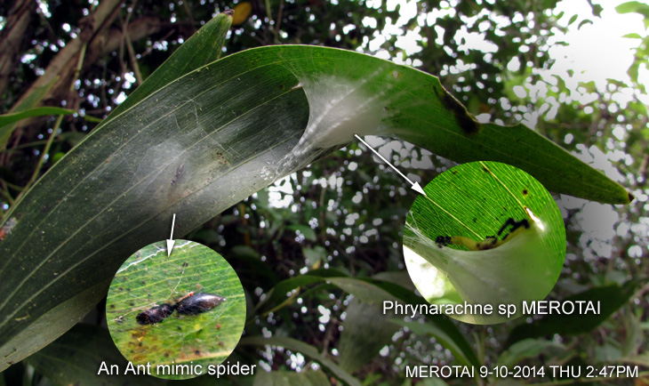 I have been following a young female on a piece of leave for few days. Then on 9-10-2014 it no more at the spot any longer. Phrynarachne ceylonica do not change residing spot often as other spider does. Only disturbing will sue it away. Or it might have been eaten by a bird I feared.