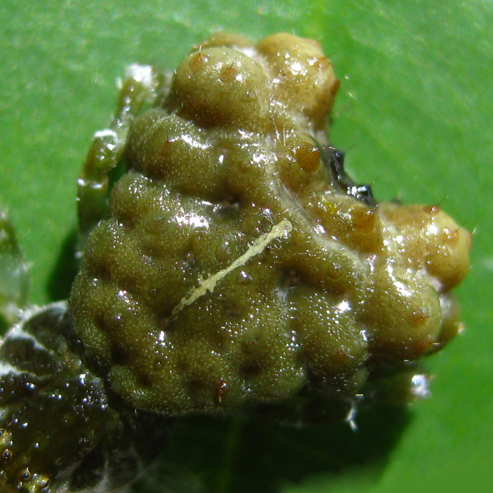 Commondly called Bird-Dung Spider because the spider's blobs and warts over the