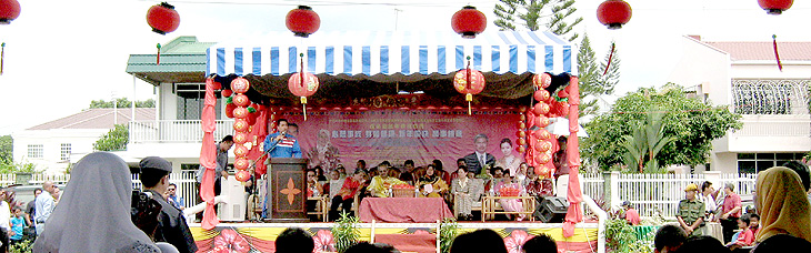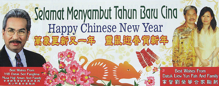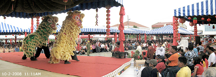 The open house concept, which is also carried out during the Muslim's Hari Raya celebration and the Hindu's Deepavali celebration promotes the bonding of friendship between the different races. Special during this period, is the various Lion Dance performances; angpow or red envelope filled with money; and the tossing of yee sang (raw fish salad) to usher in prosperity and good fortune for the new year. |