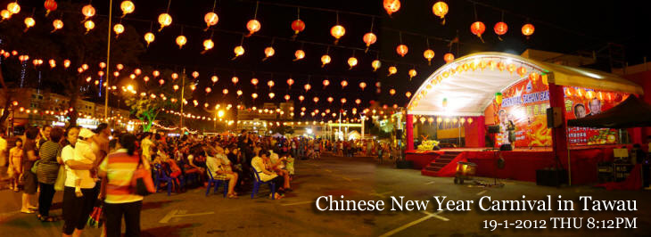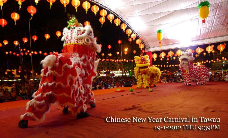 | Chinese New Year Carnival in Tawau Chinese New Year Carnival at the compound of Tawau Municipal Council (TMC) on January 17-20, 2012 The four-day event featured exhibition, sales, cultural and musical performances. The event was officially launched by Assistant Infrastructure Development Minister Datuk Pang Yuk Ming and closed by Assistant Finance Minister Datuk Tawfiq Abu Bakar Titingan. Several main roads near the venue was closed on the night of January 20, 2012 THIS first ever event WAS organized in collaboration with the TMC and Sri Tanjung’s People Development Leader Unit (UPKR) with the hope that it will help to foster the 1Malaysia spirit in the multiracial society. http://www.theborneopost.com/2012/01/14/chinese-new-year-carnival-in-tawau/