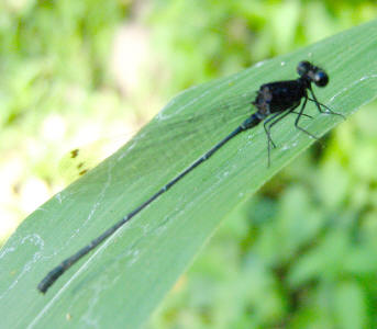The whole damselfly is pure black with