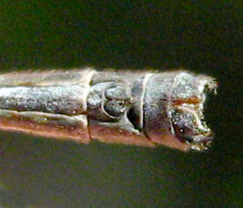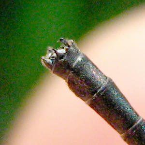genitalia of a male Onychargia atrocyana damselfly.