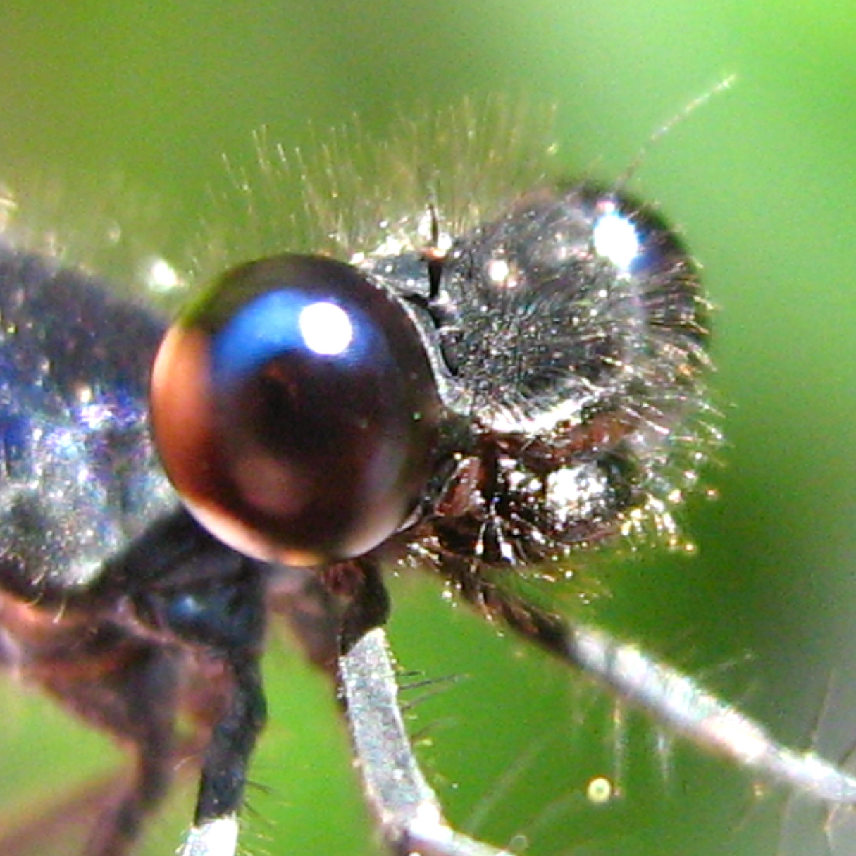 metallic deep blue on the upper part of thorax. Abdomen fine and