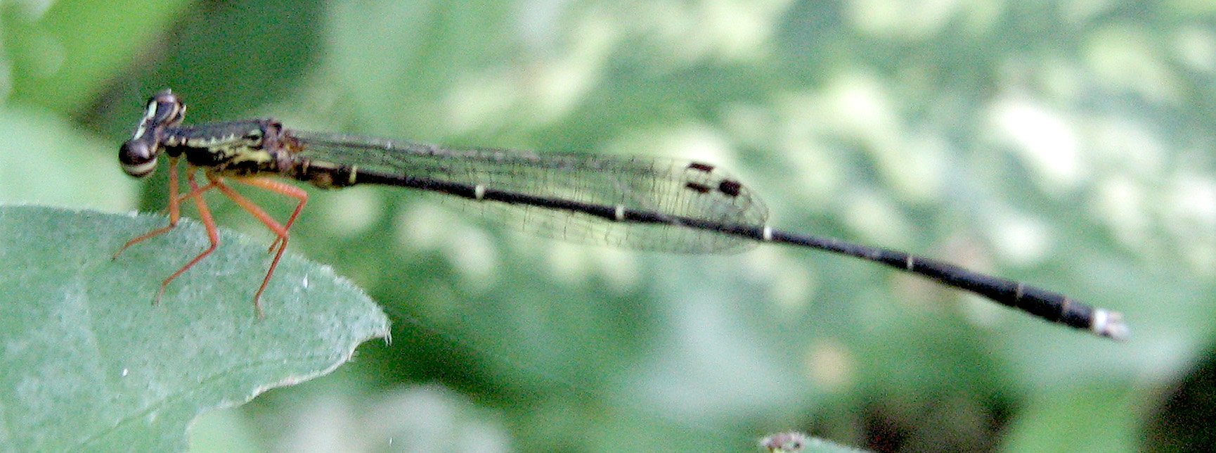 is common everywhere in swampy forested places, even in very disturbed habitat so long as it is shaded. Typically, Copera vittata has red legs but a common form found in Brunei by A.G. Orr has black legs.