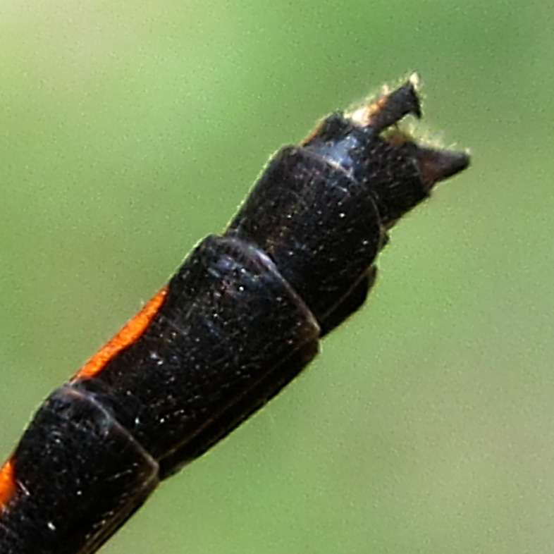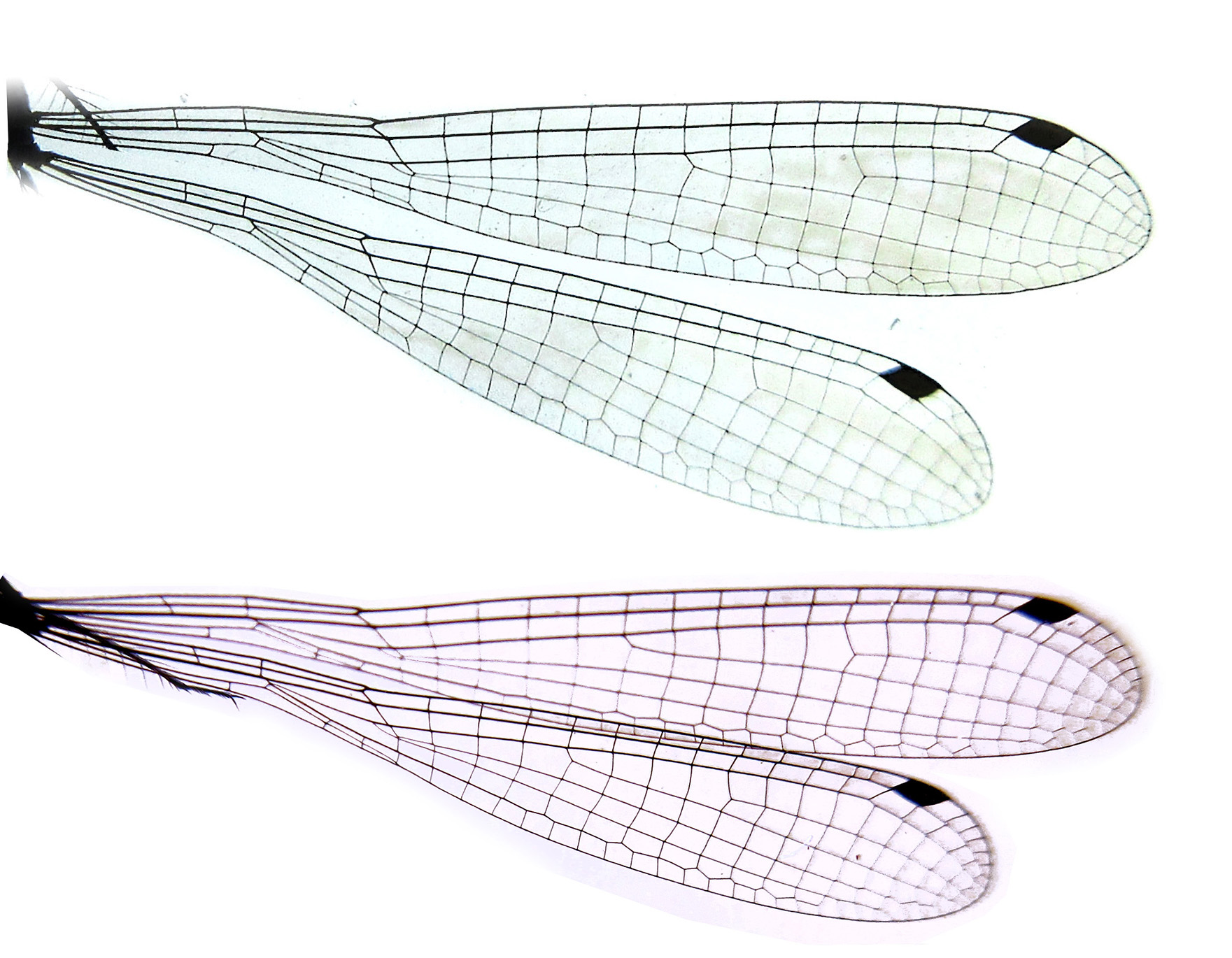 In particular the male of Elattoneura analis has a prominent orange spot at the tip of the abdomen which is lacking in Prodasineura verticalis, and the orange color is less intense.