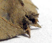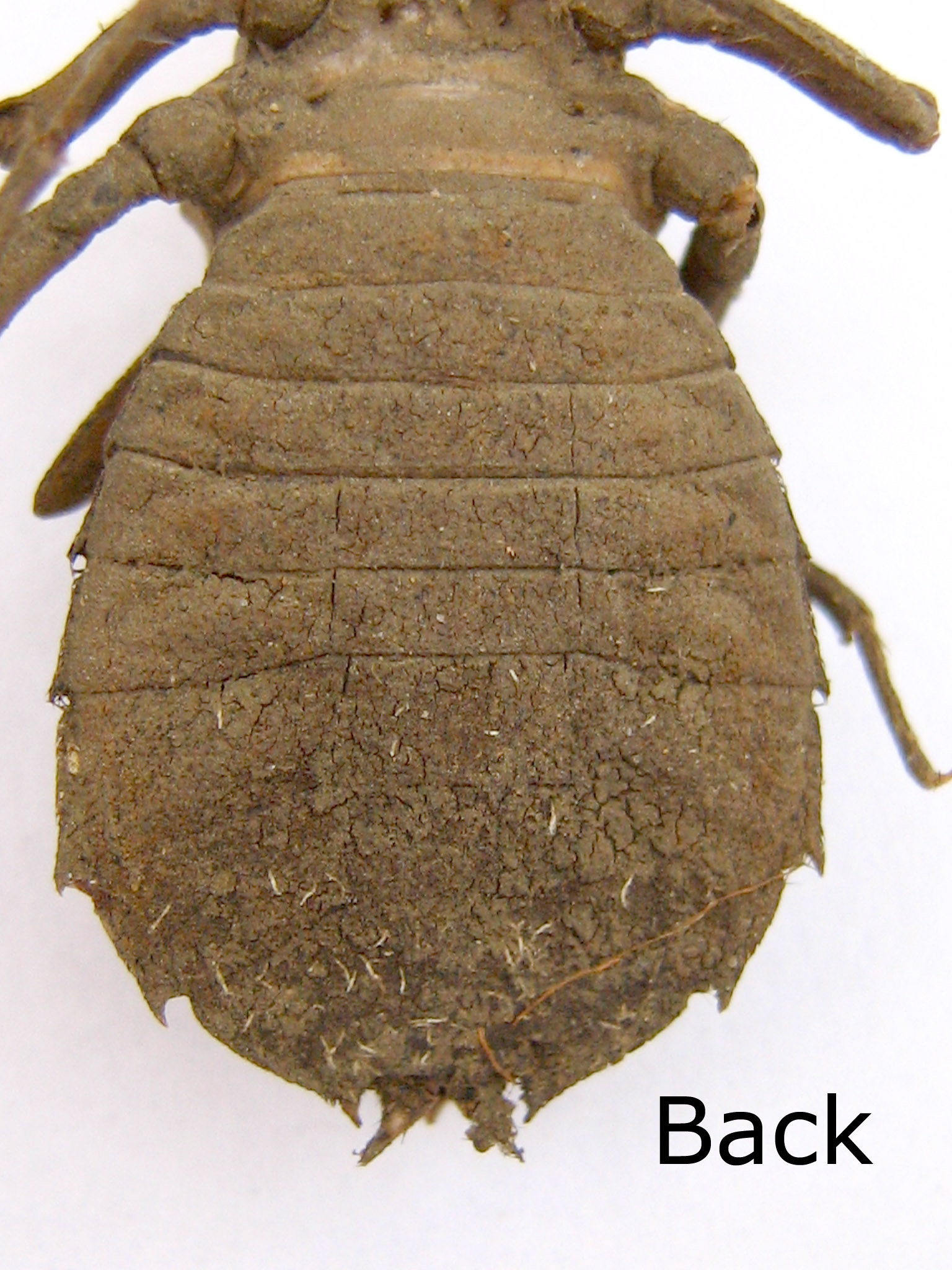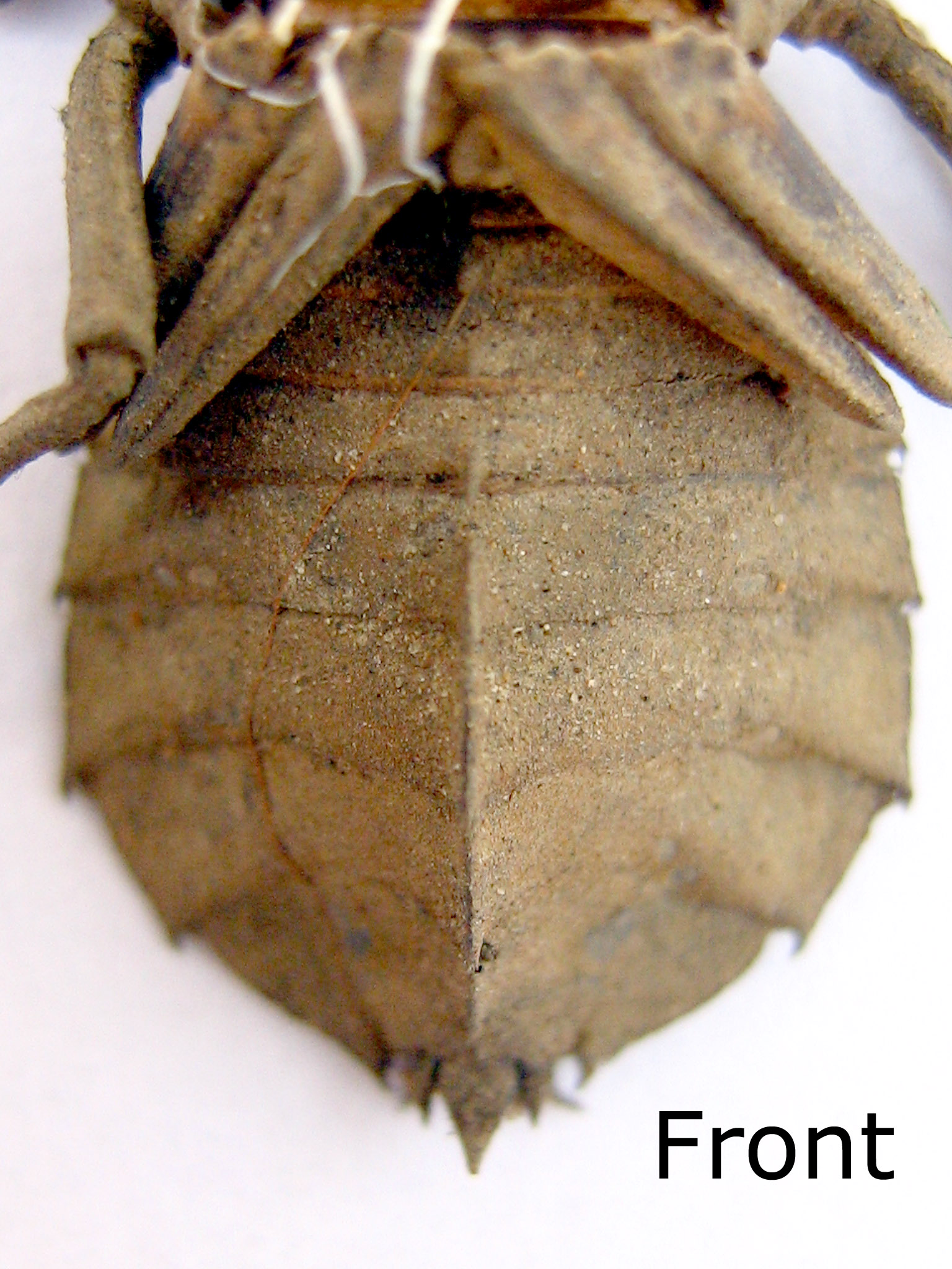 is 27mm in length. The whole skeleton is covered with sandy mud. This larval exoskeleton found on 16 December 2006 at the drainage of main entrance to Tawau Sport Complex. |