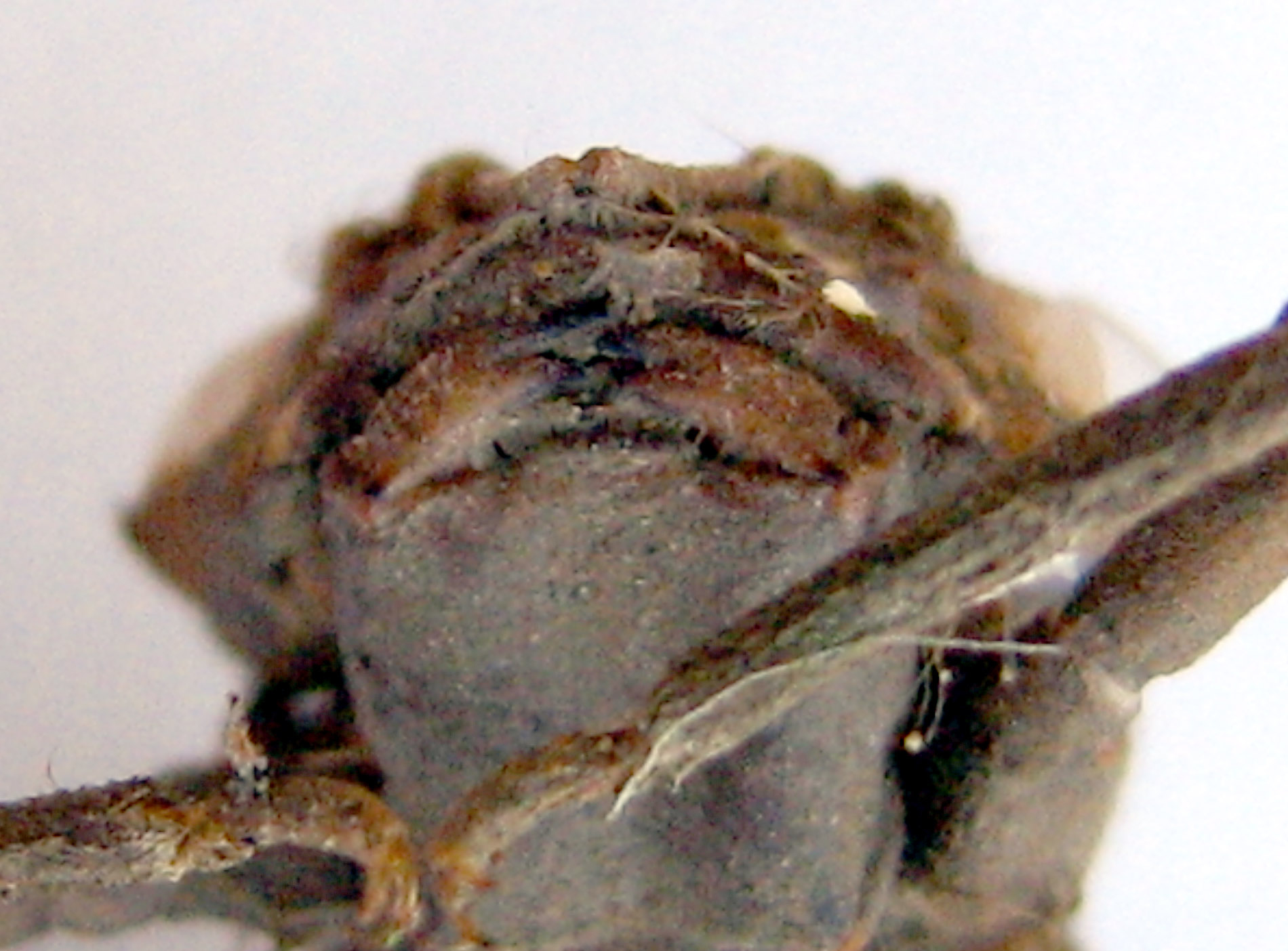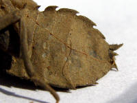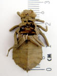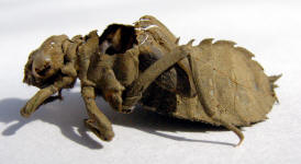 is 27mm in length. The whole skeleton is covered with sandy mud. This larval exoskeleton found on 16 December 2006 at the drainage of main entrance to Tawau Sport Complex. |