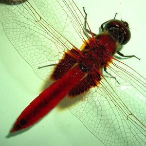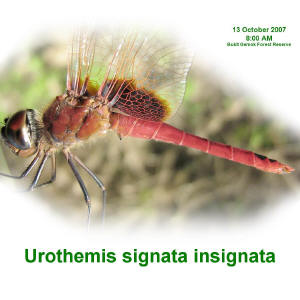 Urothemis signata insignata is a medium-sized red species (hw, 35-37 mm). Unlike other