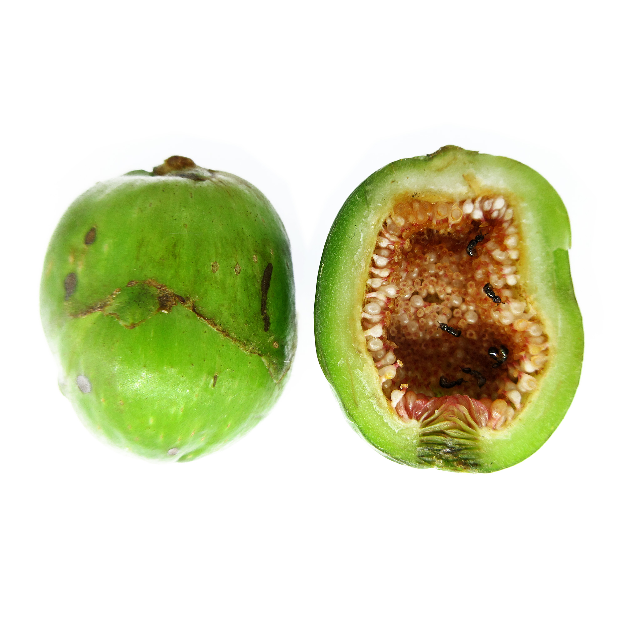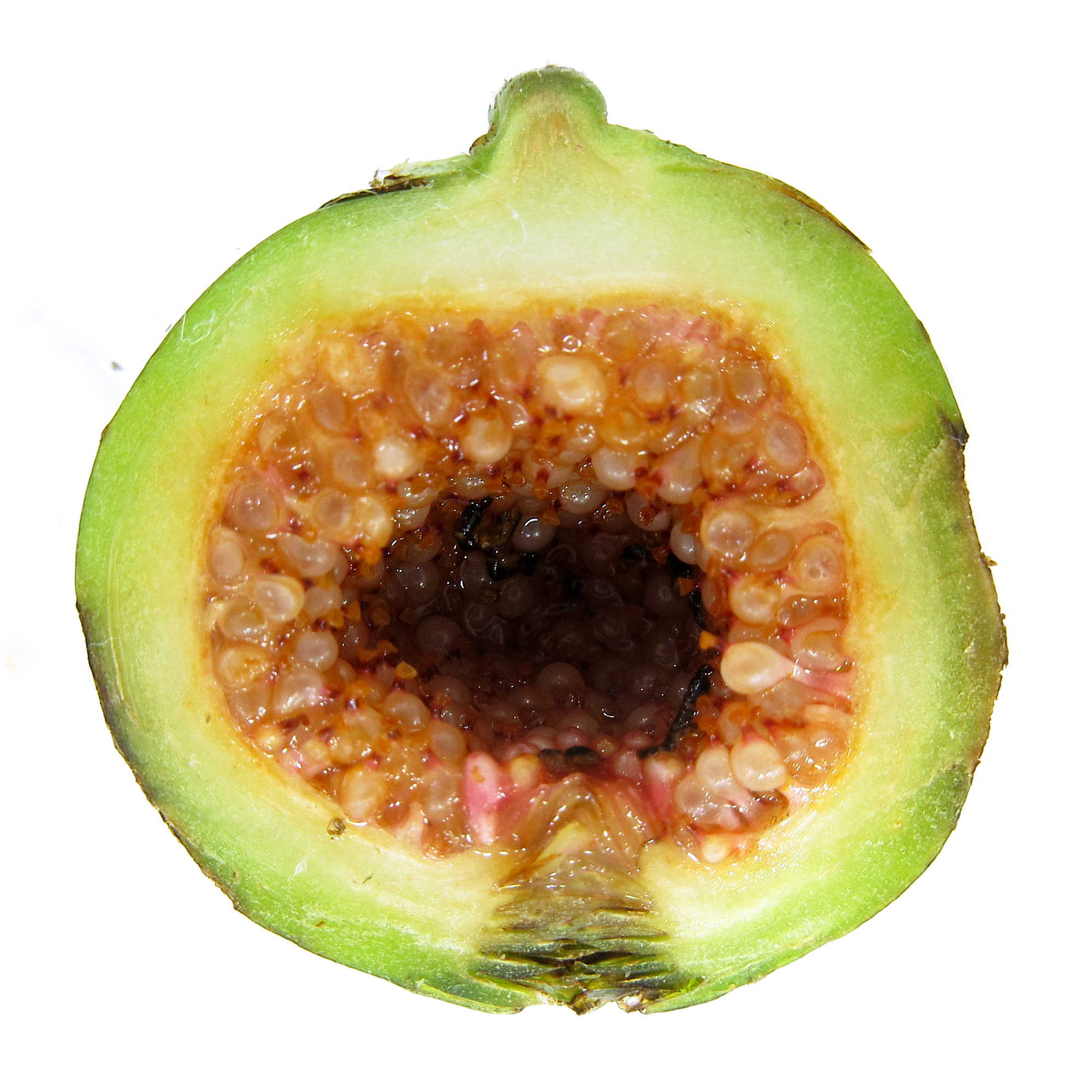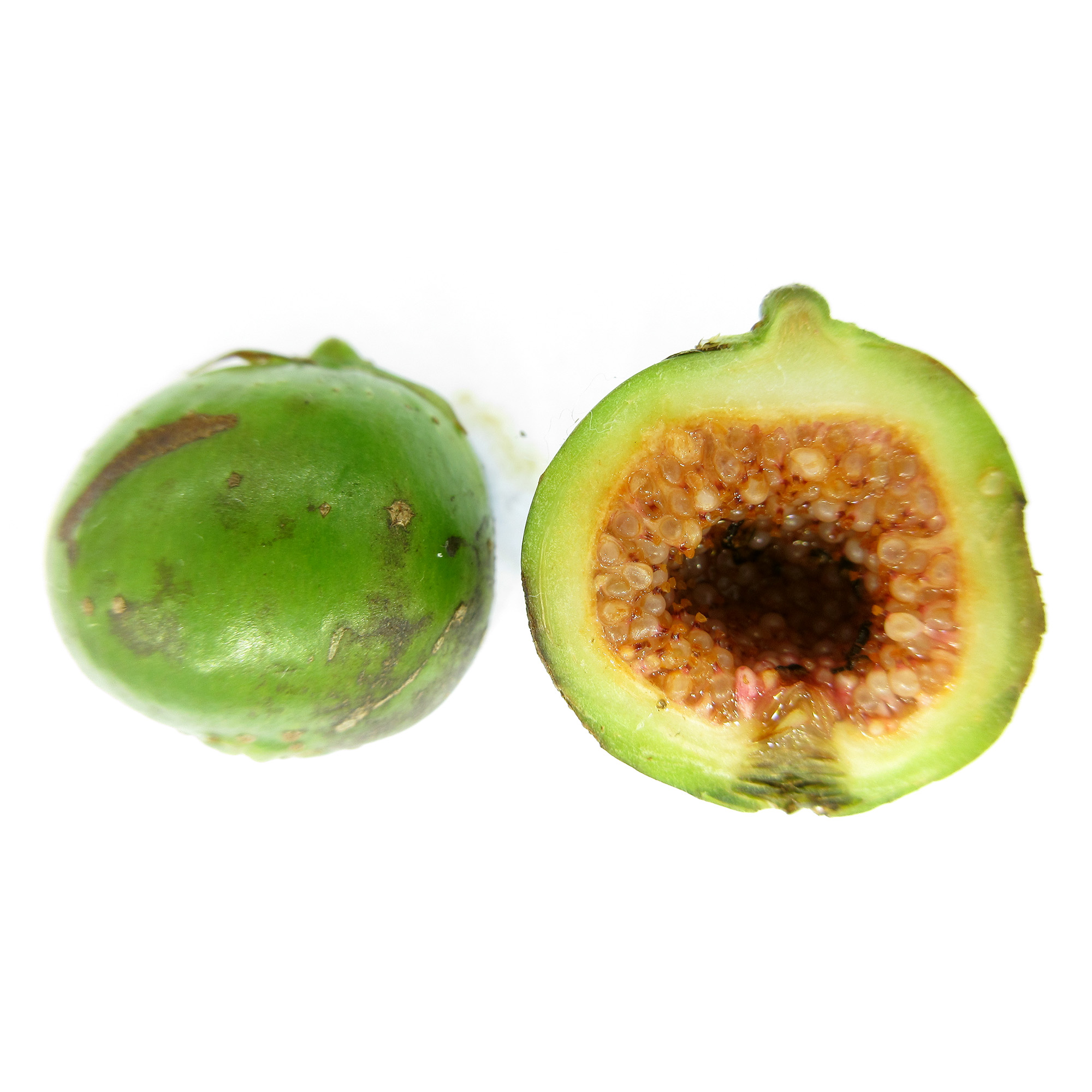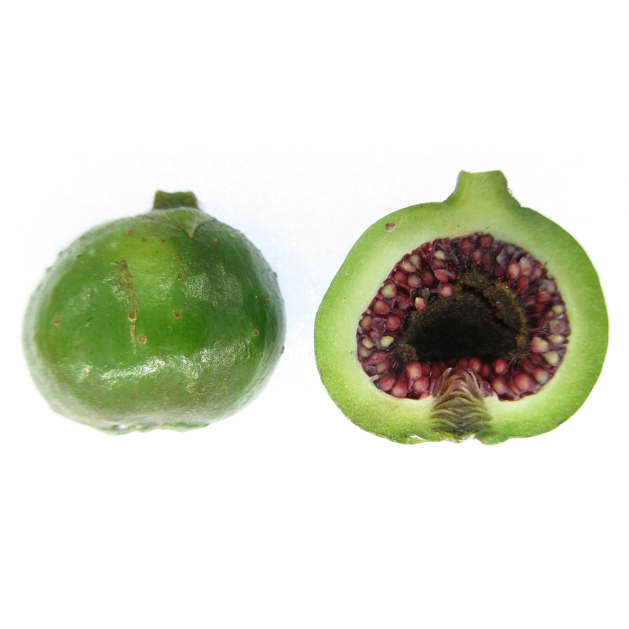 The appearances of the figs from both Ficus schwarzii and Ficus lepicarpa are very similar. Both have a yellow-green color when ripening lacking bracts and hair on the Figs.