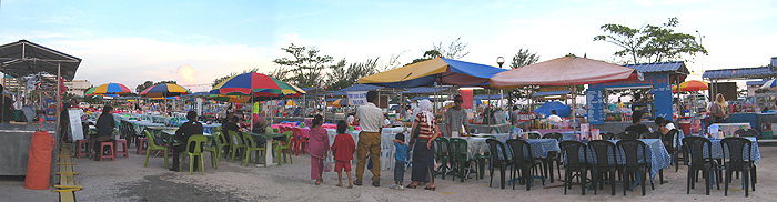 Tawau's hawker stalls are usually open from dusk to midnight, with 5:00 to 11:00