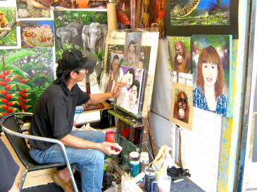 If you want your favorite pictures reproduced, head to the lower floor of the Night Bazaar Arcade of Chiang Mai. The building is a hard to miss. Here you find a big painting shop which has several artists working. A place to browse artworks by artists.
