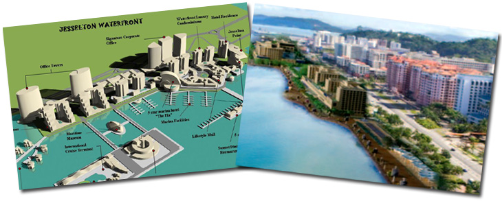 | Located north of Jesselton Point: 1) High-end Residential Developments 2) Retail Commercial 3) Office Towers 4) Waterfront Hotels 5) International Cruise Terminal ( 2 phase ) 6) 300 berths of multiple lengths Marina Further North to this Project is yet another 3rd project the SABAH INTERNATIONAL CONVENTION CENTRE (SICC) |