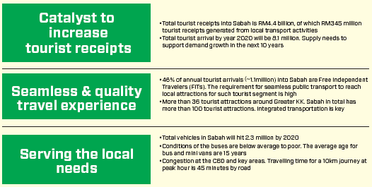 Total vehicles in Sabah will reach 2.3 million vehicles by 2020. KK city is congested with motorists where approximately 60% of total vehicles registered in Sabah are in KK. 492,606 Vehicles in KK Why public transport is crucial for the future of