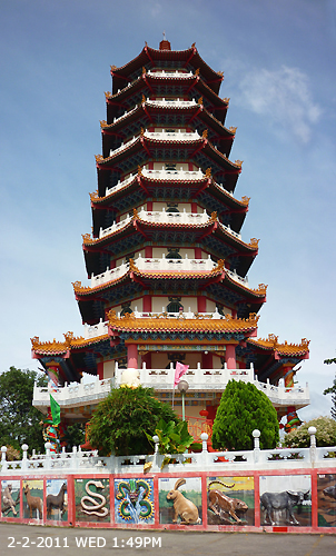 位於馬來西亞沙巴斗亞蘭的著名宗教建築龍山廟全新地標——「九層寶塔」。這座高聳入雲的寶塔不僅是龍山廟的象徵,亦成為斗亞蘭地區的一大文化亮點。寶塔特色匠心獨運 「九層寶塔」設計融合了傳統中國古典建築風格與現代建築技術,塔身以金色為主色調,象徵繁榮與吉祥。寶塔高約50米,分九層,每層均以雕刻精美的佛教神像與吉祥圖案裝飾。塔頂一顆巨大的琉璃寶珠,在陽光的映射下閃耀著奪目的光芒,令遊客流連忘返。