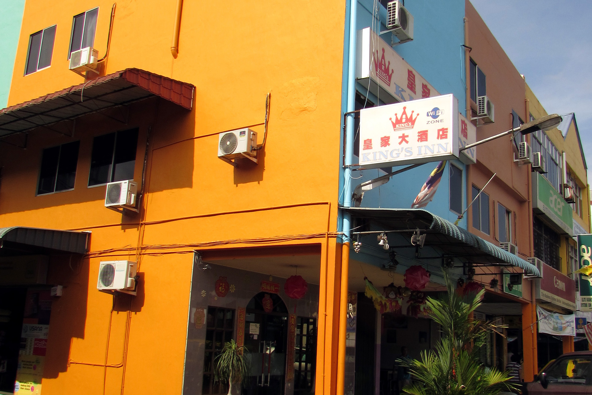 King’s Inn 皇家大酒店 11-13 Bank Road, Sarikei. (Facing Rejang River, Near to bus and Kuching express wharf terminal and Glory's Cafe kopitiam.) Tel : (+60)84-653311 Fax : (+60)84-659311 Email : stephenchentp@yahoo.com It's in a 3-storey block at Jalan Bank between Terminal 2 wharf and the bus terminal. The corridors are decorated with old pictures of Sarikei and Bintangor.The rooms come with free wireless internet access. There is a problem on the Haier brand air conditioner in room 203. No cool air, only fan running and only their own staff know where to press on the controller to get the cool air running. |