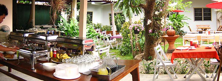 BUFFET breakfast 80 Baht only. We offer you the best breakfast in a Chiang Mai orchid flower garden.