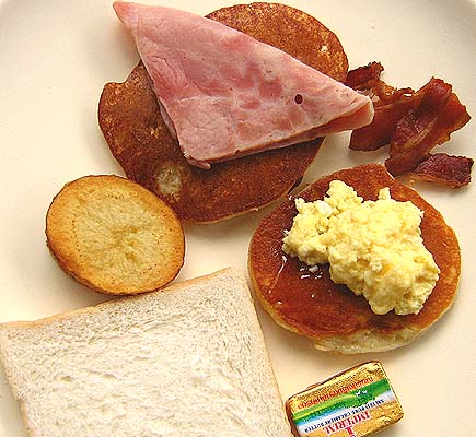 You will have : fruit juice, salad, fruit, muslie yogurt, pancake, home made fried potato, ham, bacon, sausages, fried eggs, sandwiches, toasts. fried rice, fried egg noodles, coffee, tea, Soya milk, milk,
