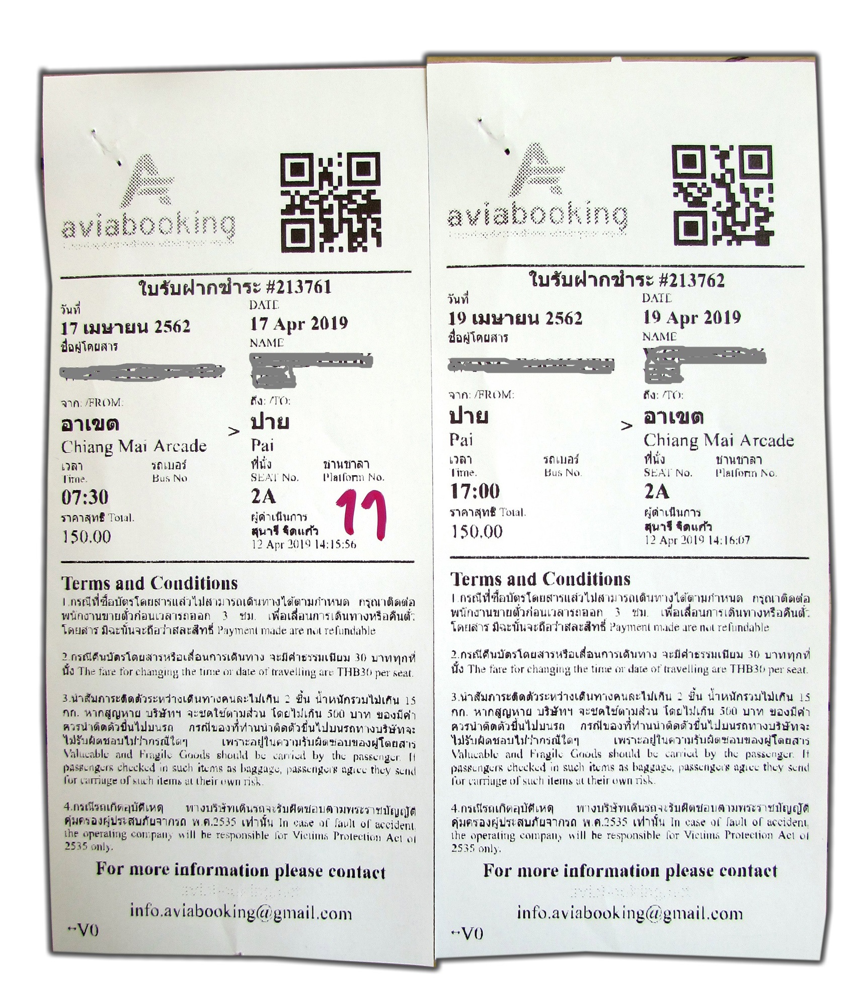 For routes between Pai and Chiang Mai, and Pai and Mae Hong Son, ticket prices