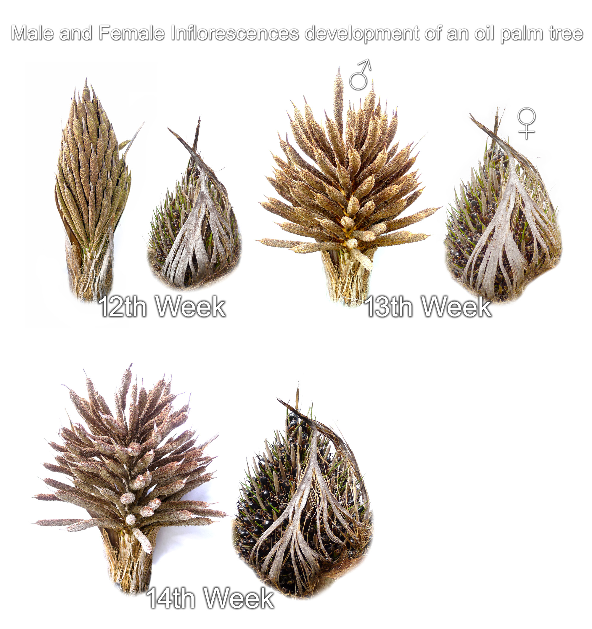 Male and Female Oil Palm flower Inflorescence Development from 10th to 14th
