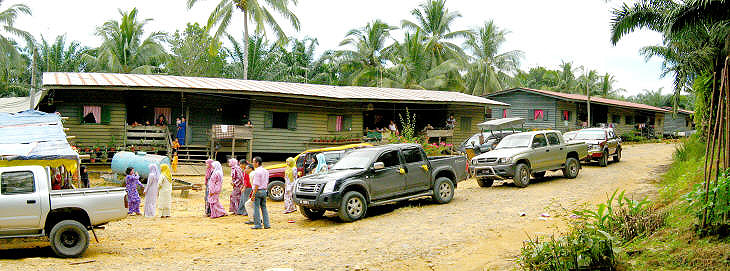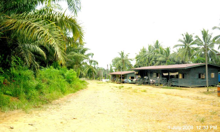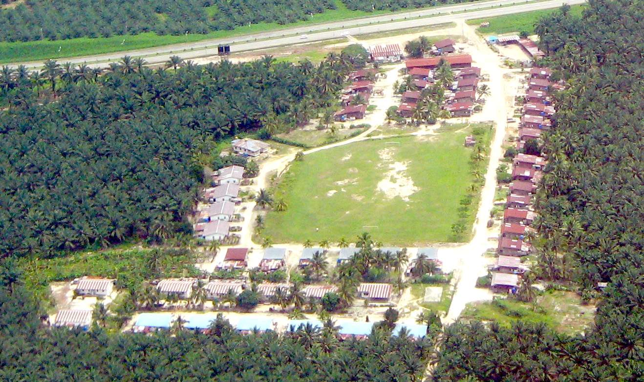 Oil palm plantation workers' quarter, surrounded by thousands of hectares of oil