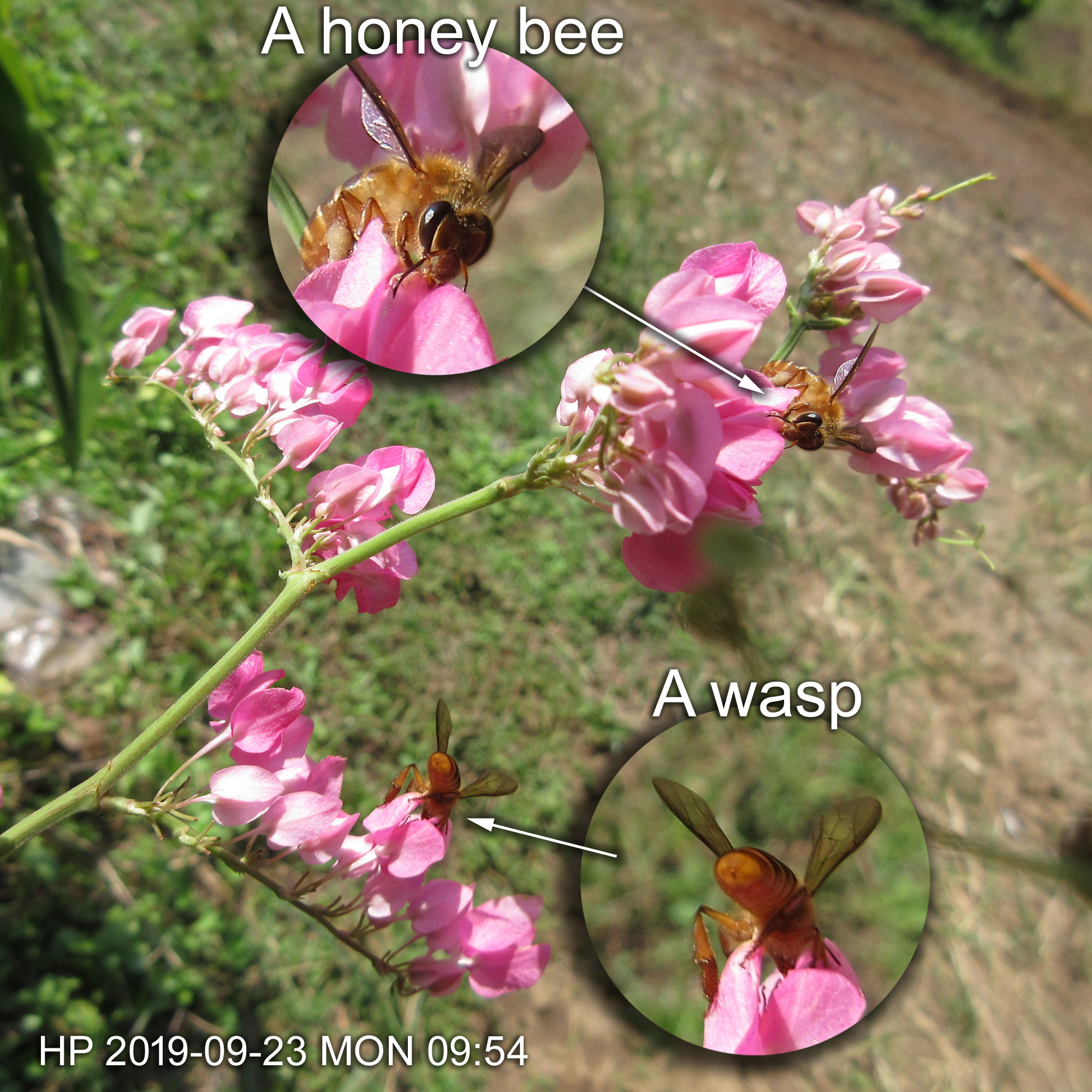 This Antigonon leptopus flowers attracted honey bee and wasp.