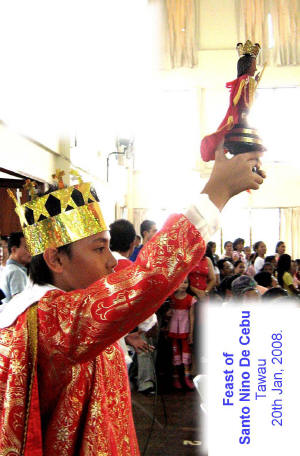 Around the world, Pinoys (Philipinnos) celebrate the Feast of Santo Nino on 3rd Sunday of January. Here’s one from Tawau on 20 January 2008 in Holy Trinity Church