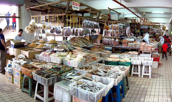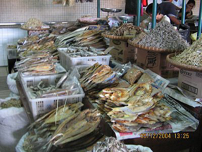 Dried seafood is on 1st floor. On this first floor you see preserved seafood such as dried prawns and dried salted fish which are sold at local affordable prices for local people. Being constantly supplied by fisherman from Indonesia and Philippines, the market always stock with new and fresh seafood freshly dried under the sun.