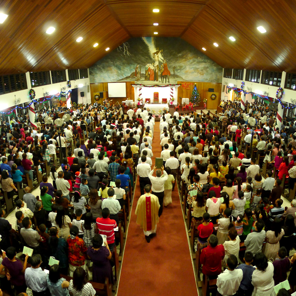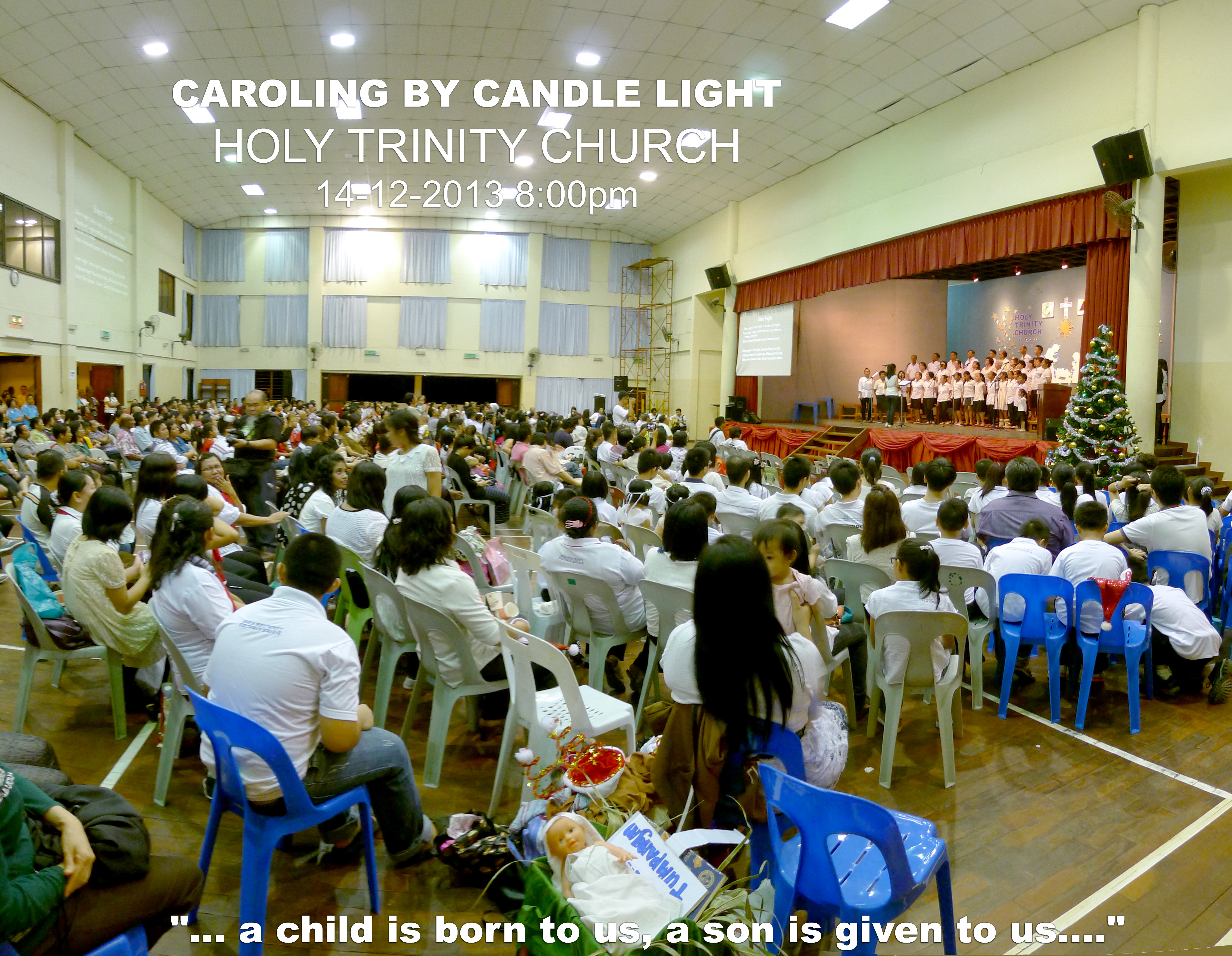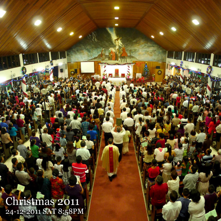 Christmas Celebration Christmas celebration at Holy Trinity Church Started at 8pm on Christmas Eve 24th December 2011with carol singing at the main church led by the music ministry. More people coming this year. Msgr. Nicholas Ong blessed the crib before the Eucharistic celebration which began at 9pm. Gabriel Nunang, head of the Indonesian Catholic community of