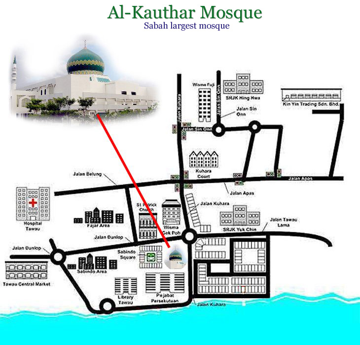 Al-Kauthar Mosque in Tawau is the largest mosque in Sabah. This Tawau beachfront