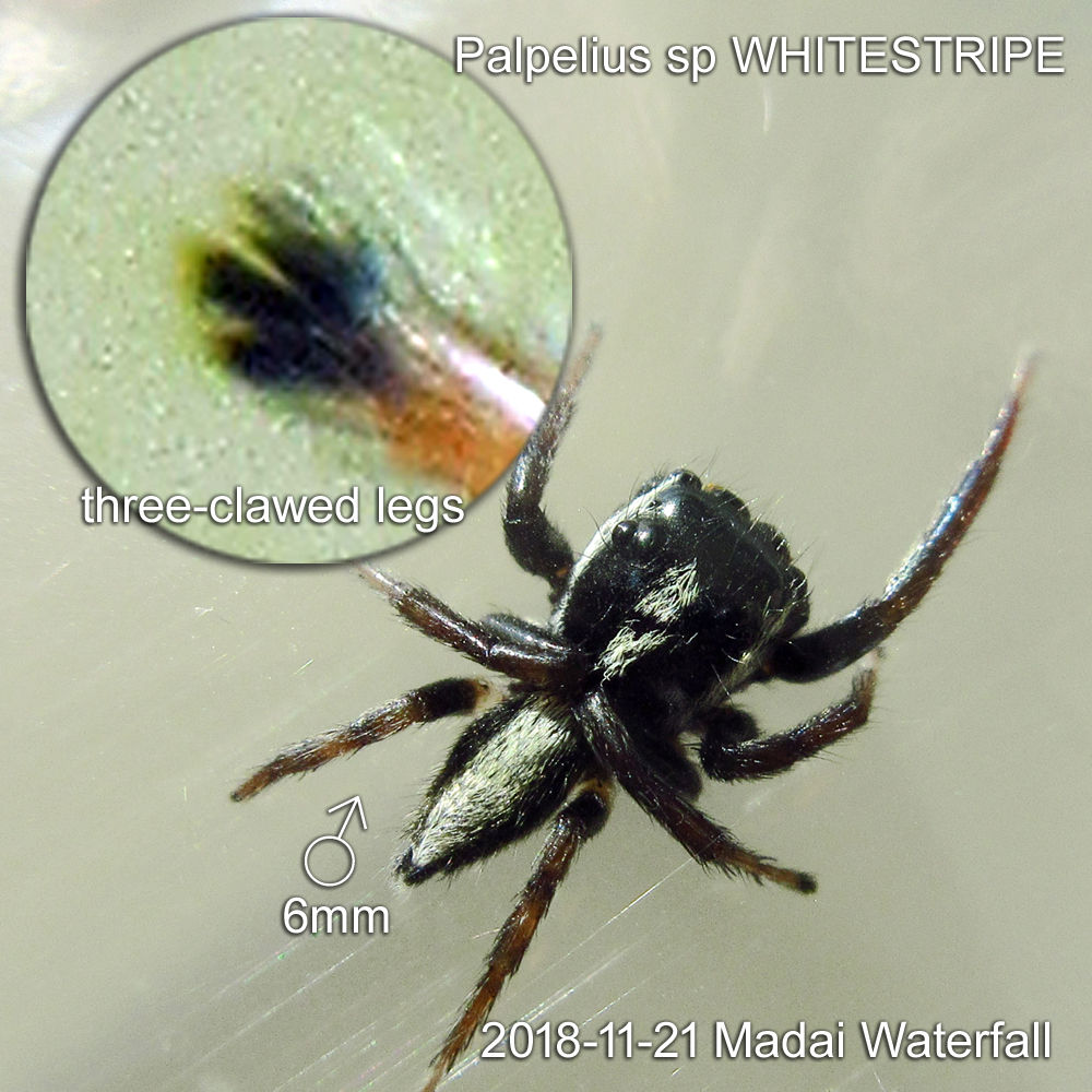 Palpelius sp WHITESTRIPE is a common small jumping spiders in Borneo Island. We have 5 individuals in our records: