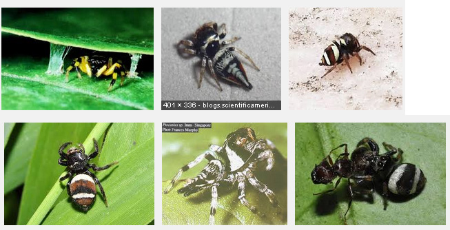 http://blogs.scientificamerican.com/expeditions/spiders-in-borneo-geometrical-jumping-spiders/ Uroballus and Ptocasius have triangular abdomen ending in a point.