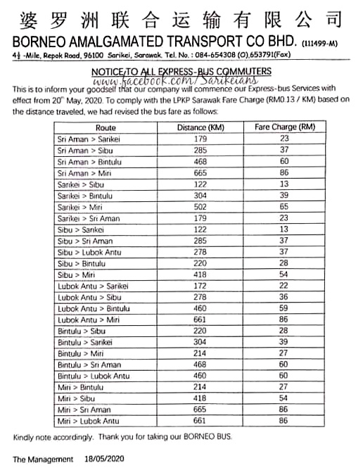 Bus fares of BORNEO BUS