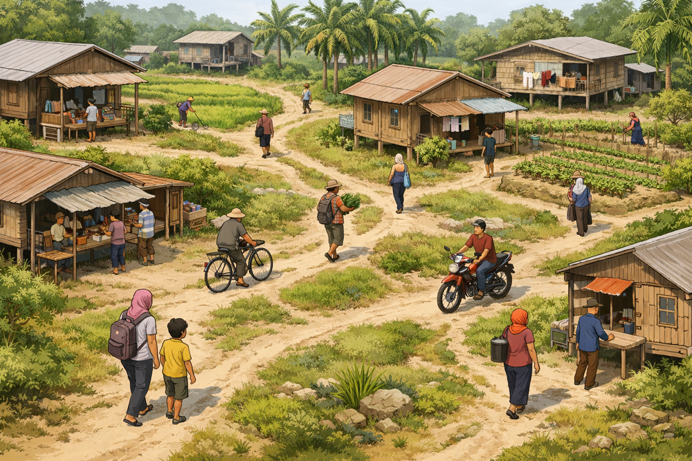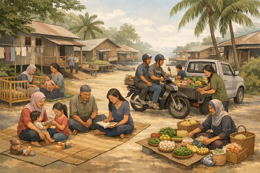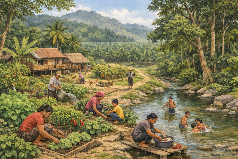 Daily life in Tawau villages follows natural rhythms shaped by space, movement, environment, and shared routines. This page introduces how village life is organised before exploring work, food systems, and social activities.