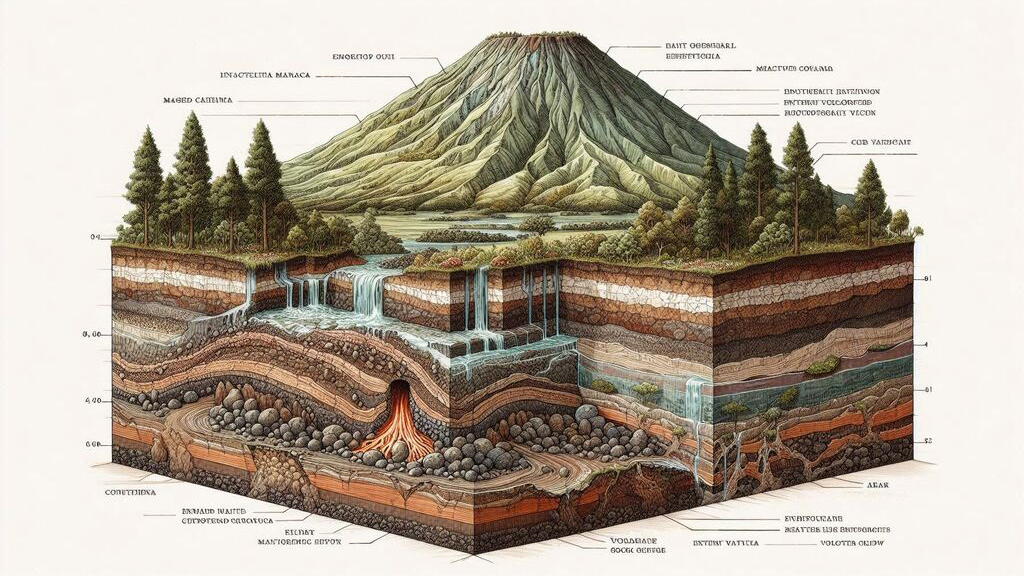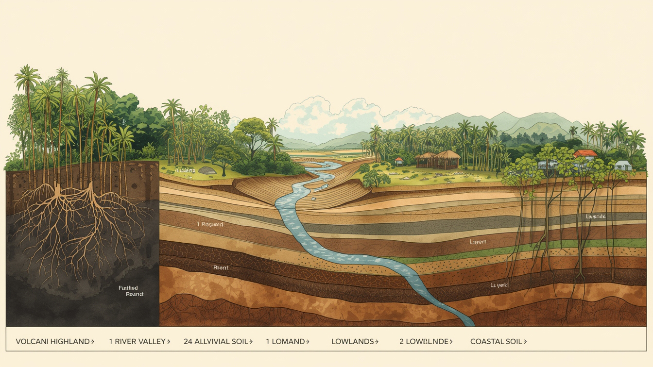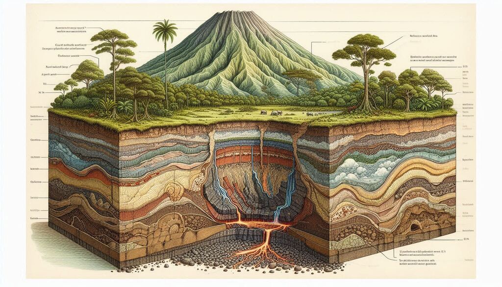 Batuan gunung berapi terurai menjadi tanah kaya nutrien yang mengekalkan air dan mineral. Tanah ini menyokong hutan tropika padat, ekosistem pelbagai, dan pertanian produktif. Oleh itu, geologi secara langsung mempengaruhi corak vegetasi dan biodiversiti.